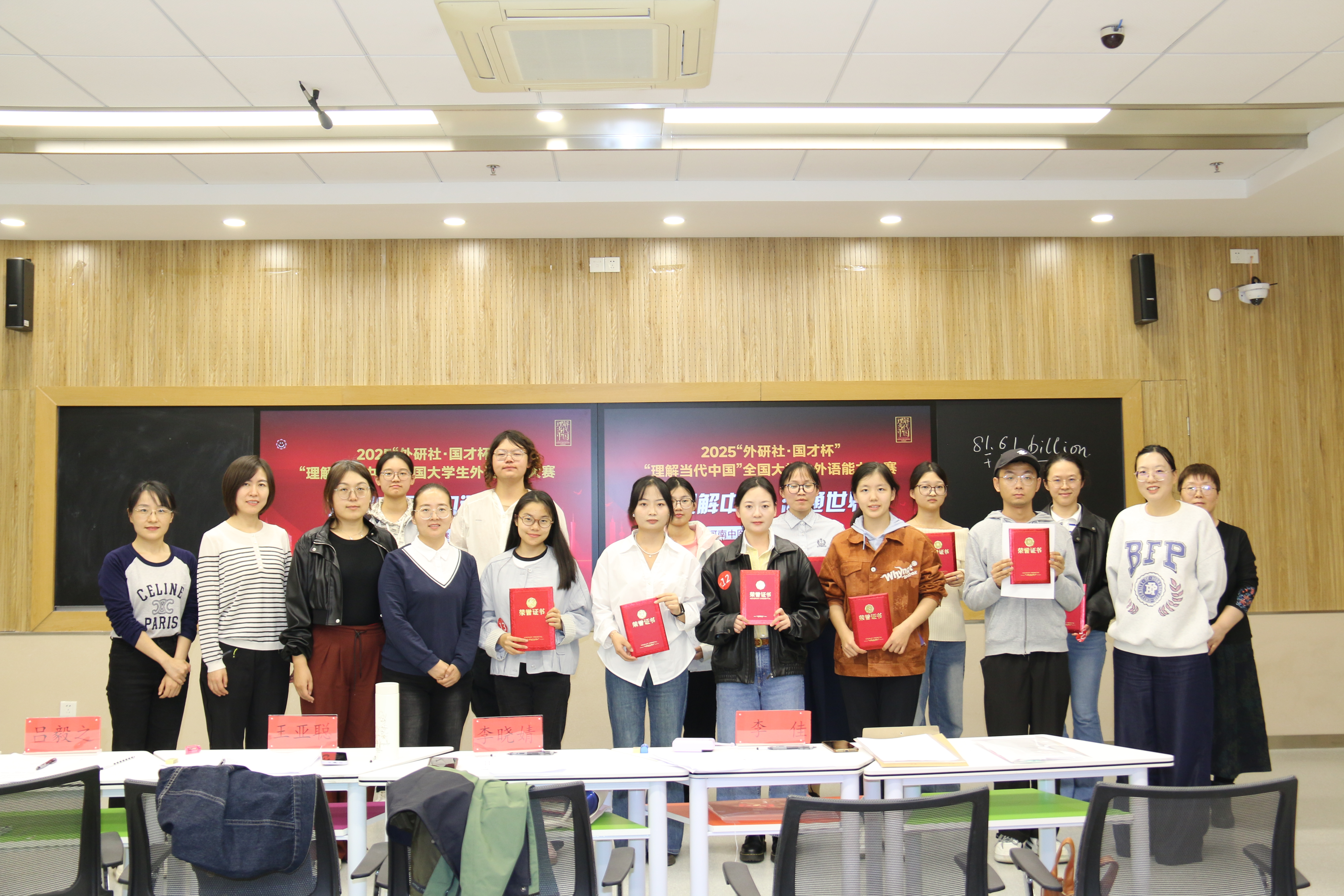 比赛现场合影获奖学生名单(图/张冰 刘鸿 左璐 文/刘九茹 张中华)11月1日至9日,2025“外研社・国才杯”“理解当代中国”河南省大学生外语能力大...