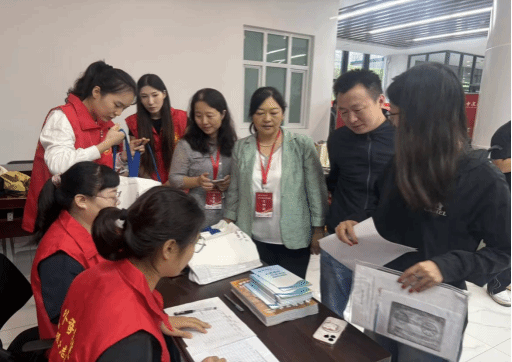 翻译硕士志愿者身着统一的服装,耐心解答新生们的疑问,主动帮助新生搬运行李,为12名2025级研究生送上了学院第一份关心。在签到台前,志愿者们耐心细致地协助新生完成报到手续,确保每一个环节畅通无阻,让新生快速融入外语学院这个大家庭。