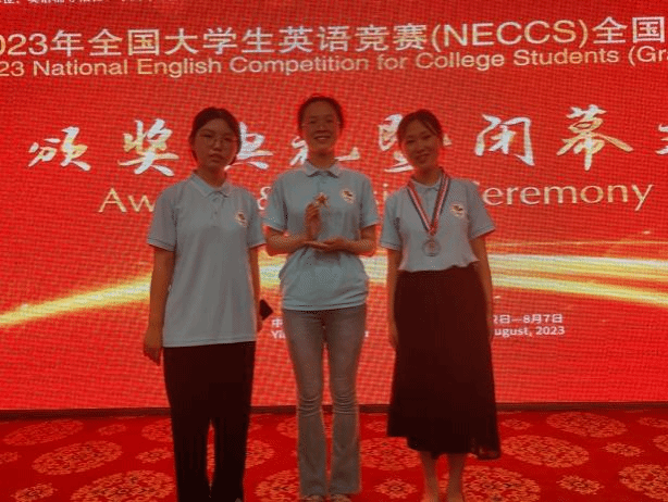 2023年8月2日至7日,全国大学生英语竞赛(NECCS)全国总决赛在宁夏回族自治区银川市拉开帷幕。在将近一周的激烈角逐中,我校3名学生在总决赛中发挥出色,共获全国一等奖2项,三等奖2项,优秀奖1项,个人优秀奖2项,创下我校学生参加此项赛事的历史最好成绩。